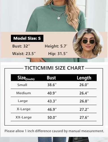 TICTICMIMI Women's Casual Long Sleeve Sweatshirt Tops Mock Turtleneck Lightweight Tunic Fall Pullover with Pocket