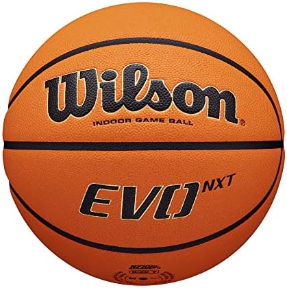 100% Composite Leather Imported WILSON NCAA Evo NXT Indoor Game Basketball - Size 6 - 28.5" Extended Range Tech: Optimally balanced, super soft core construction generates more spin with less effort at any range and a softer touch around the rim. Micro-Touch Composite Leather: A Micro-Touch Cover provides an extra layer of grip and moisture management. Super Soft Core: Extra cushioning allows your fingers to dig deeper into the surface for better control and a softer feel, helping every player find the shooters touch. Composite Pebbled Channels: Composite channels are pebbled instead of smooth, creating a consistent texture over the entire surface of the ball for unparalleled control.