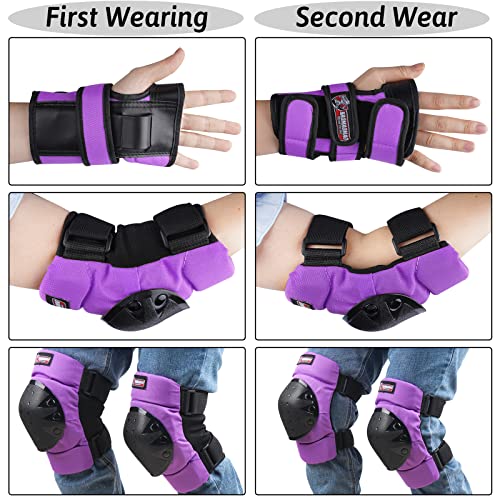 ? SKATEBOARDS SPORTS PROTECTIVE GEAR - Adult/Kids Youth knee pads elbow pads wrist guards are designed sports protection ,especially for ice and roller cycling skating,skateboard,hoverboard,biking,ATV,snowboarding,BMX,football and other outdoor sports.The tough plastic bumper and cushion pads of the knees elbow wrist pads are effectively impact resistance, Skate pad provide enough protection for a high impact outdoor sport. Knee and elbow pads ? PROFESSIONAL and COMFORTABIE MATERIAL - Tough plastic pumper made of anti-scratch high-hardness PVC shell,The interior of adult cushion pads is made up of EVA cotton and polyester cloth, Youth knee pads which is not only shockproof, but also very soft keeps dry and fresh and reduces sweating during hours of skating,snowboarding,skiing.scooter,cycling and etc. ? ADJUSTABLE ELASTIC BANDS - The knee pads elbow pads and wrist guard are come with elastic straps which are adjustable for a comfortable fit on your body ,Ensure free movement during exercise, The comfortable size could adult/kids youth to enjoy the exercise experience freely. ? 3 IN 1 ADULT/CHILD ROLLER SKATING GEAR SET - 2pcs knee pads, 2pcs elbow pads,2pcs wrist guards, Use size Size Suggest: S suggest for 3-6 year old, M suggest for 7-14 ,L suggest for 15-18Youth,XL suggest for Aldult/Youth It can adjust size and tighten freely. Suitable for different height and weight(Please check our size chart in the detail picture) ☀ BEST GIFT CHOICE - Haomaomao adult/kids youth knee pads elbow pads wrist guards protective gear set is the good choice as the gift for children's Day, Birthday, Christmas, etc. A variety of sizes (S/M/L/XL) and colors (black / purple / blue / yellow / red / pink) to choose from. Suitable for men and women skateboard accessories. ♥The correct way to use the knee pads:Our knee pads are designed to be worn in two different ways to suit different body types. The first is a wearable way, suitable for thin or summer use when wearing short sleeves and shorts, where the knee pads can be worn directly on the legs and arms. The other way is the Velcro fastening, which is suitable for fat people or people wearing long sleeves and pants, where the knee pads are attached to the knees and elbows and then fixed with a Velcro fastening #15,456 in Sports & Outdoors ( ) #27 in