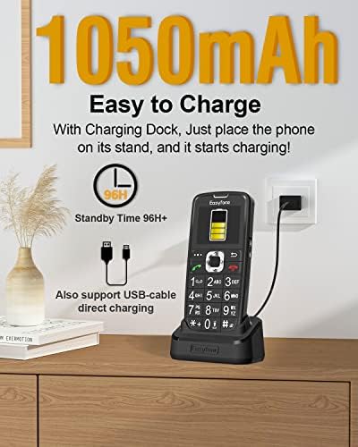 Easyfone Prime-A6 4G Unlocked Feature Cell Phone, Easy-to-Use Clear Sound GSM Dumbphone with an Easy Charging Dock