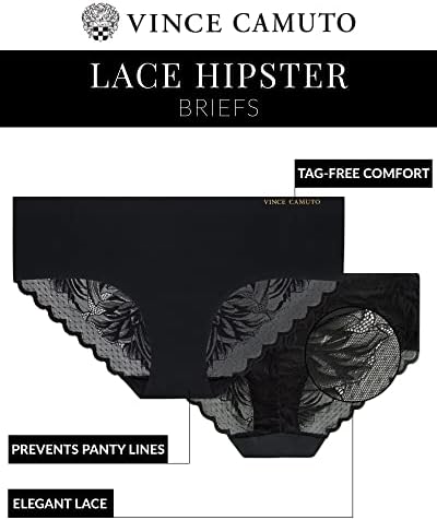OFFICIALLY LICENSED VINCE CAMUTO: Women's Hipster Panties; Committed to delivering the highest quality products, the most consistent branding, and unsurpassed value with passion, integrity, and loyalty LOGO WAISTBAND: Built with your comfort in mind, these hipster briefs are have a comfort logo Vince Camuto waistband and are tag-free so you can stay comfortable HIPSTER STYLE: Women's underwear with a logo waistband that sits on the hips; A variety of stylish prints accent these women's hipster style briefs MULTIPACK VALUE: Get 3 pairs of seamless lace hipster style panties for one great price EASY CARE: Machine Wash, Tumble Dry; Please Reference the Product Description for More Details #33,363 in Clothing, Shoes & Jewelry ( ) #54 in