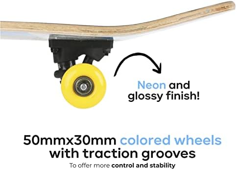 Perfect for beginners: This 31 inch skateboard is a versatile choice for both beginners and pros that want just the right balance of convenience, safety, and stability; it's the perfect choice for anyone that wants to ease into longboarding Portable and lightweight: Thanks to a sturdy wooden build coupled with the lightweight, our skateboard for cruising makes the perfect companion for your outdoor trips and travels; it's easy to carry around making it ideal for anyone that wants to skate anywhere they want Sturdy and stable build: The complete skateboard deck is made using durable and sturdy maple wood to add strength and stiffness while also gives it a stylish flair; it offers more traction for your feet and gives better control when skating The skateboard is suitable for all skill levels. The skateboard provides just the right fit for Cruising, Carving, Free-Style, Downhill, and more while staying stylish the super cool graphics; it's designed with aluminum alloy trucks to offer more control and stability when riding Thoughtful gift idea: If you're looking for a gift for family and friends that like to skate then our wooden cruising skateboard has you covered; it makes the perfect gift for Christmas, Birthdays, New Year's, Thanksgiving, and any other occasion you have in mind