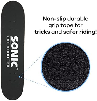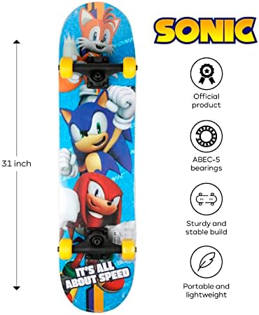 Sonic The Hedgehog Character Skateboards - Cruiser Skateboard with ABEC 5 Bearings, Durable Deck, Smooth Wheels (Choose from Sonic, Knuckles, Tails or Sonic & Friends)