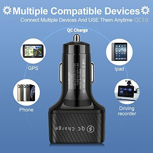 Amiss Car Charger Adapter, 6 USB Multi Port, Fast Charger, Include QC 3.0 and 5 Other Ports, Car Interior Accessories, Fit for iPhone 13/12/11/pro, Samsung Galaxy/Note S10/S9/S8, Android - Black