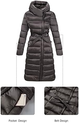 Bellivera Women's Puffer Jacket Lightweight Quilted Hooded Long Down Alternative Coat with Belt