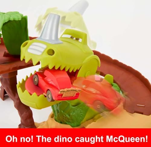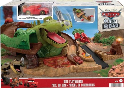 Mattel Disney and Pixar Cars On The Road Toys, Dinosaur Playground Playset with Lightning McQueen Toy Car, Dinosaur & Launcher