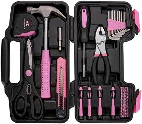 An essential tool set for daily home project and maintenance like furniture assembly, picture hanging and general purpose repairs etc. All the tools are constructed from premium material and precisely manufactured to ensure durability and longevity Meet ANSI quality standard and backed up by lifetime warranty Comes with a compact and handy storage case for easy carry and neat organization This kit includes: (1) claw hammer, (20) screwdriver bits, (1) bit driver, (1) bit holder/extension (8) hex keys, (4) precision screwdrivers, (1) slip joint plier, (1) tape measure, (1) utility knife, (1) scissor