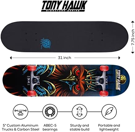 Tony Hawk 31 Inch Skateboard, Tony Hawk Signature Series 4, 9-Ply Maple Deck Skateboard for Cruising, Carving, Tricks and Downhill