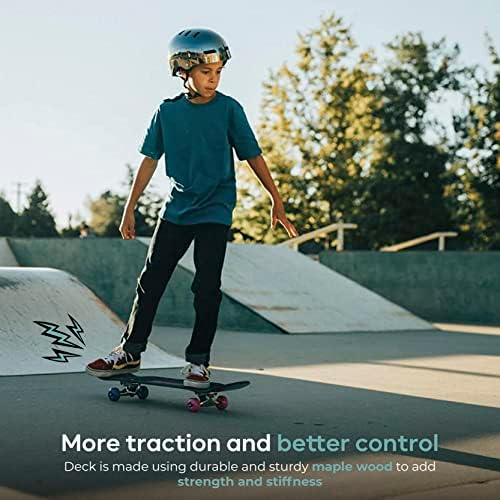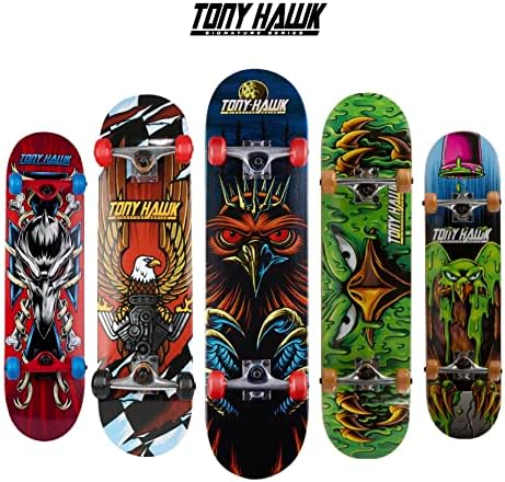 Perfect for Intermediate Riders: This 31 inch series 4 skateboard is a step up Pro Board with 5" Custom Aluminum Trucks & Carbon Steel ABEC-5 bearings that gives you just the right balance of convenience, safety, and stability. Portable and lightweight: Thanks to a sturdy wooden build coupled with the lightweight, our skateboard for cruising makes the perfect companion for your outdoor trips and travels; it's easy to carry around making it ideal for anyone that wants to skate anywhere they want Sturdy and stable build: The complete skateboard deck is made using durable and sturdy maple wood to add strength and stiffness while also gives it a stylish flair; it offers more traction for your feet and gives better control when skating Tony Hawk Signature Series: The skateboard is suitable for all skill levels and part of the Tony Hawk Signature Skateboard Series. The skateboard provides just the right fit for Cruising, Carving, Free-Style, Downhill, and more while staying stylish the super cool graphics; it's designed with aluminum alloy trucks to offer more control and stability when riding Thoughtful gift idea: If you're looking for a gift for family and friends that like to skate then our wooden cruising skateboard has you covered; it makes the perfect gift for Christmas, Birthdays, New Year's, Thanksgiving, and any other occasion you have in mind