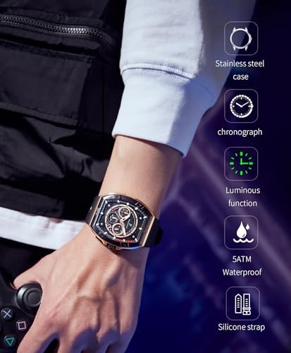 ⌚【FASHION AND ClASSIC】PARAS CROWN men's watches are meticulously crafted in a vintage style, featuring a Tonneau case that seamlessly blends oriental aesthetics.They incorporate a clever combination of colors, materials, and manufacturing techniques to create a fashionable and classic look. ?【304 STAINLESS STEEL CASE】PARAS CROWN men's wristwatches have a masculine look with a large stainless steel case measuring 49x45mm (1.93x1.77 inches). The stainless steel case not only provides exceptional durability and corrosion resistance but also extends its longevity. ?【BEST GIFTS &24-MONTH ASSURANCE】Every watch comes with a beautiful box, perfect for Thanksgiving Day,Christmas,New Year,Birthday,Wedding,Graduation,Valentine's Day,an ideal gift for father, husband, boyfriend, or brother. ?【Miyota JS25 MOVEMENT 】PARAS CROWN men's luxury watch features the Miyota JS25 Japanese quartz movement, which is renowned for its precision and reliability. Whether you're dressing up for a formal event or going for a casual look, this watch will complement your style perfectly. ?【5ATM WATERPROOF】After undergoing strict testing, the watch has been rated as waterproof up to 50 meters, which effectively protects the watch from splashes, rain, hand washing, sweat, cold water, and daily wear. #205,616 in Clothing, Shoes & Jewelry ( ) #850 in