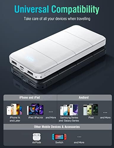 UYAYOHU Portable-Charger-Power-Bank - 15000mAh 2 Pack Power Bank Dual USB Output 5V3.1A Fast Charging Portable Charger Compatible with All USB Devices and Smartphones (Black White)