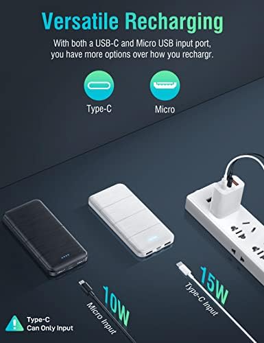 Portable Charger with 5V 3.1A 2 USB Output ports ,which can fast charge 2 devices at the same time.The USB C and Micro USB input ports can fully refill the battery itself in 4-5 hrs at 5V 2.0A.(Note: Type-C port can only input, does not support output) Power Bank has 15000 mAh ultra-high capacity.The shell adopts the imitation metal wire drawing process, which is more wear-resistant than other smooth ordinary styles. The ergonomic arc design is easy to hold and feels comfortable. The smart IC inside the power bank label can automatically identify or be compatible with all products. Smart IC conversion current is stable, which can effectively prevent overcharge, overvoltage, overcurrent and short circuit, bring you a safe using experience. Power bank uses the safe high-density lithium polymer battery module, which is more compact and has a larger battery capacity, It exceeds the traditional Lithium ion battery on safety.The safety of customers is our most concerned about ,Customer satisfaction is our greatest motivation. The portable charger is easy to use and simple, and also easy to carry. You can travel without the anxiety of charging. Because the power bank can solve the problem of charging for you.