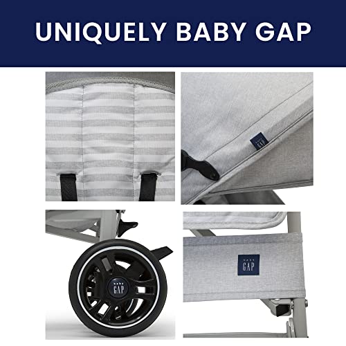 babyGap Classic Stroller - Lightweight Stroller with Recline, Extendable Sun Visors & Compact Fold - Made with Sustainable Materials, Grey Stripes