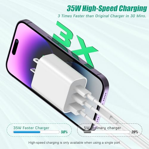 ?【35W PD 3.0 Fast Charging Block】Three port integrated fast iphone charging blocks, connected to a device to obtain a maximum charge of 35W, enough to charge the iPhone 14 Pro Max at full speed.Its speed can be four times faster than the original 5W charger. It can quickly charge the iPhone 14 Pro Max from 0% to 58% in 30 minutes. When you connect three devices,usb c block power will be efficiently distributed between ports to ensure optimal charging. Maximum output 35W,minimum output 12W. ?【2 Packs 3-in-1 USB Wall Plug 】Use Articona usb c charger block With 2 USB-C ports and 1 USB-A port, you can fast charge multiple devices such as phones and tablets at the same time. Advanced power distribution technology ensures optimal performance and faster charging time each time.Compared to a regular charger, this three port usb c adapter is compact and lightweight, perfect for travel, achieving the ultimate in speed, efficiency, and convenience! ?【Fast Charger Block Safe Assurance】This multi-port usb c charger has passed UL certification and features multiple charging protections such as overvoltage protection, overcurrent protection, overheating protection, and short circuit protection.It also provides continuous temperature monitoring and output control.When the device is fully charged, the charging station will automatically stop charging to protect the connected device. ?【iphone 15 charger adapter Universal Compatibility】USB C Charger can charge multiple devices for New iPhone 15/iPhone 15 Plus/iPhone 15 Pro/iPhone 15 Pro Max/iPhone 14/14 Plus/14 Pro/14 Pro Max,iPhone 13/13 Mini/13 Pro/13 Pro Max,iPhone 12/12 Pro/12 Pro Max/12 Mini,iPhone SE (2nd generation),iPhone 11 series,iPhone X series,iPhone 8 and later;iPad Pro,iPad Air,iPad Mini, AirPods Pro 2and later/iPad Mini 5 and later Pixel 3XL/3/2,Samsung Galaxy/Note Series,Google,LG,Moto,and other USB devices. ?【What You Will Receive】2 packs of PD 3-Port iPhone adapter plugs (note: no cable)+ professional customer service team,If you have any question when you receive your USB C Charger Block please contact us and we guarantee to provide you with a satisfactory solution. #1,778 in Cell Phones & Accessories ( ) #187 in