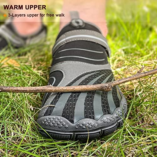 COMFORTABLE--These water shoes are designed with ergonomic structure which can hold the feet better,its 3MM upper with molded-foam is super soft and warm to your feet; RELIABLE--Pure rubber sole with extra edge protection and engraved anti-slip pattern,gives full traction for you to overcome the slip floor or rocks in rugged ground; STRETCHY FIT--The upper is stretchable,not less not more,just right to keeping fit in you movement in water sports or field hiking; QUICK DRY--Breathable upper with molded foam in middle layer,keeps your feet fresh in water and makes it drying quickly while out of water; LIGHTWEIGHT--flexible rubber sole and super lightweight,easy to carry and free on feet.