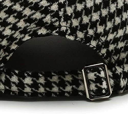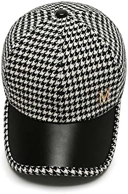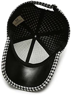 Women Men Streetwear Baseball Cap, Checked Snapback Hip Hop Baseball Cap Pu Leather Korean Style Hat(Khaki)