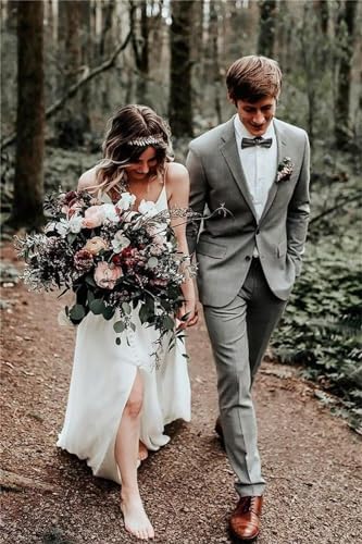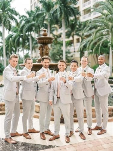Wangyue Men's Linen Suit 2 Piece Causal Summer Suits Slim Fit Wedding Suit Groomsmen Prom Tuxedo Suits