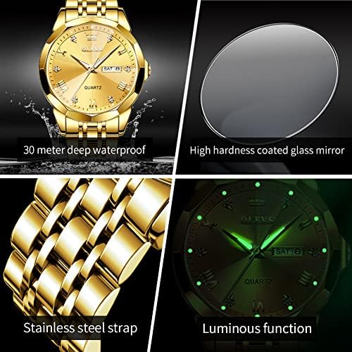 ⌚Analog Quartz Watches for Men:Original imported quartz movement,the battery life can be as long as 2-3 years. quality assurance,provide stable and accurate time.It is a must-have wrist watches mature man. ⌚Business Dress Men Watches:Big face watch for men with day date.diamond roman indexes, easy to read, classic business style, stand the test of time, handsome and outstanding. ⌚316L Stainless Steel Strap:Solid stainless steel watch bracelet, hidden butterfly pushed button,prevent perspiration, quality assurance.The watch is equipped with a tool for adjusting the strap, which is simple and easy to operate. ⌚3ATM Waterproof Watch/Luminous:30M waterproof meets daily waterproof needs. the luminous function can read the watch in the dark environment. ⌚OLEVS Men Watches: Male watch come with olevs brand box.we offer a 30-day free return period and a 1-year warranty period are also provided. If you encounter problems during the use of the two tone silver watch, you can contact us through Amazon. #8,392 in Clothing, Shoes & Jewelry ( ) #12 in