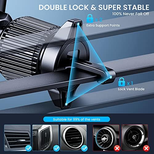 3-in-1 Car Phone Mount: Cell phone holder car can be mounted on the windshield, dashboard, or air vent, making it perfect for any car or truck. It's also a great assistant for Uber and Lyft drivers. Powerful Suction Cup: iPhone holder for car is equipped with super sticky suction and a double lock design for smooth and stable mounting when driving. To restore adhesion, simply rinse the sticky surface with warm water and wipe it dry. Flexible Telescopic Arm: Cell phone car mount features a rotating 360-degree ball for increased comfort and a safer driving experience. Car phone holder designs an improved telescopic arm that can be adjusted from 3.7 inches to 5.9 inches for various viewing angles. Full Phone Protection: Cell phone car holder with vacuum silicone rubber and thick panels that provide full protection for your phone from scratches and drops, even at high speeds, bumps, or turns. Device Compatibility: It is compatible with 4.0-7 inch cellphones including iPhones or Android devices even with thick cases. Phone car holder mount has a one-touch release button, allowing you to release your phone with one hand while driving.