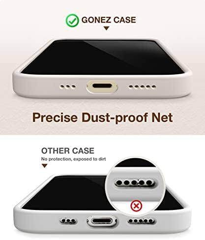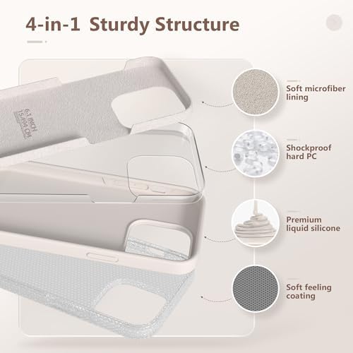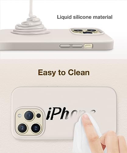 GONEZ for iPhone 14 Pro Case, with 2 Pack Screen Protector + 2 Pack Camera Lens Protector, Soft Anti-Scratch Microfiber Lining, Shockproof Protective Liquid Silicone Phone Cover 6.1'', Stone
