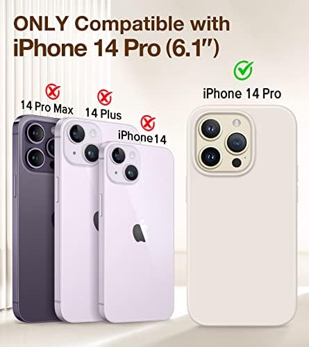 [Premium Silicone Case]: Only compatible with iPhone 14 Pro 6.1 inch 2022 Released. Our iPhone 14 Pro case offers a baby skin-like smooth touch. It features an upgraded Nano Oleophobic Coating that resists fingerprints and scratches. And support wireless charging. [Full-body Protection]: The iPhone 14 Pro phone case is made with soft feeling coating, premium liquid silicone, shockproof hard polycarbonate back cover, and soft microfiber lining, providing good shockproof and anti-drop damage protection 1.5mm screen bezels and 2.0mm camera lips provide scratch protection for your 14 Pro. [Precise Cutouts]: The slim iPhone 14 Pro silicone case seamlessly wraps around your phone. Precise cutouts accommodate the volume buttons, side buttons, and curves of the device without adding bulk. The speaker's dust-proof net prevents the accumulation of dust and debris, keeping it clean. [2X Screen Protectors & 2X Camera Lens Protectors]: It includes 2 Pcs screen protectors that are easy to install and bubble-free, which can protect your screen against scratch and shock. We also provide 2 Pcs camera lens protectors to safeguard your camera lens and prevent dust buildup. [Lifetime Warranty]: We offer a lifetime warranty and 24H customer service for defective products, such as the wrong size case or any non-expectations. Please feel free to contact us and you'll get an effective solution.