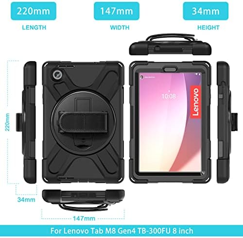 ?【Case for Lenovo Tab M8 4th Gen 2023】 Designed for Lenovo Tab M8 4th Gen (Model: TB-300FU). Not compatible with any other devices, Please check back bottom of your tablet to find the model number. ?【Lenovo M8 Tablet Case with Adjustable & Detachable Carrying Strap】 According to any need, remove the shoulder strap or the length can be easily adjustable. It also features displaying your lenovo tab m8 tablet behind car head rest for entertainment for kids. ?【Lenovo Tab M8 Case with 360 Degrees Rotating Stand & Adjustable Hand Strap】 On the back side of Lenovo Tab M8 Kids Case, built-in kickstand can supports your tablet both in horizontal/vertical position and hand strap makes it easy for you to hold the Tablet. ?【Rugged Protection Case for Lenovo M8】 Advanced three layer drop protection nonslip for Lenovo Tab M8 combined of polycarbonate hard shell and soft silicone cover withstands accidental drop, bumps and shock. ?【A 100% RISK-FREE PURCHASE】: Is there something wrong with your new TSQQST Shock-absorption high impact resistant Case for your Lenovo Tab M8? We always do everything possible to ensure your complete satisfaction!