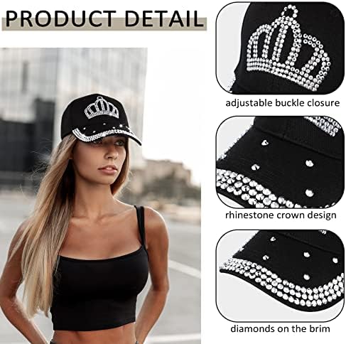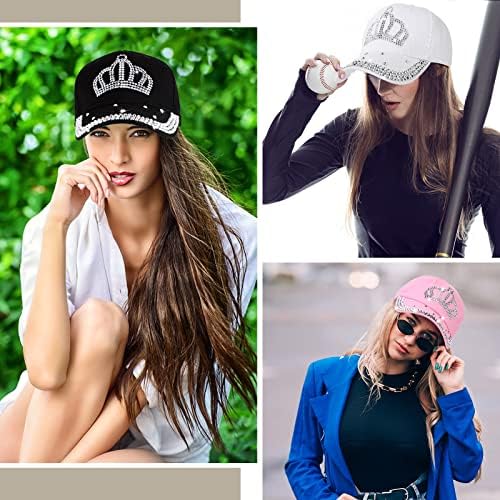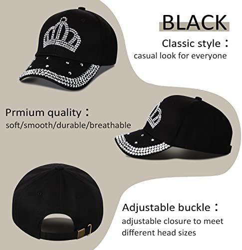 Parcel for You: you will get 3 pieces of rhinestone women baseball cap in different colors, black, white, pink respectively, trendy and attractive, which are enough to satisfy your wearing needs and replacement needs; Different colors can match different clothes according to your preference to make the whole wear coordination Exquisite Crown Design: the bling baseball caps for women are decorated with rhinestone crown patterns, which make them look beautiful and trendy, and they will attract people who love shiny items; The rhinestones are firmly fixed, so you don't have to worry that they will fall during the wearing process Soft and Breathable Material: our rhinestone baseball caps are made of quality cotton, jeans denim and rhinestones, soft and comfortable, you can wear them for a long time without feeling stuffy; They are stable in structure, not easy to shrink, suitable for most seasons Flexible Adjustment: the rhinestone baseball caps come with an adjustable design, the size can be adjusted according to your needs, suitable for about 22.05-24.41 inch/ 56-62 cm in head circumference, proper for most women and men; The caps are approx 4.33 inch/ 11 cm in height and he brims are approx 2.95 inch/ 7.5 cm long, which can reduce the direct sunlight without blocking the view Suitable for Many: the baseball cap with rhinestones can be applied for cycling, motorcycling, football, swimming, hiking, running, training, camping, and other outdoor activities, applicable for most weathers; You can also send it to your kids, friends, colleagues and relatives as a gift #536,622 in Clothing, Shoes & Jewelry ( ) #277 in #320,919 in
