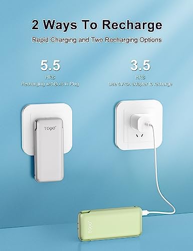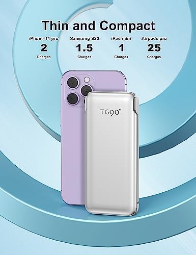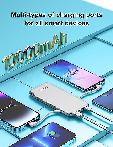 TG90° 10000mah Portable Charger with Built in AC Wall Plug, Slim Power Bank with Built in Cables Portable Battery Pack Charger Compatible with iPhone Android Smart Devices