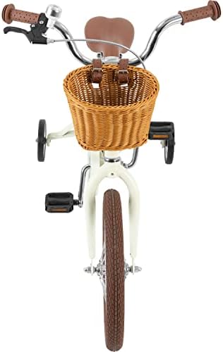 LOW-PROFILE FRAME: Beaumont kids bike is 16 inches and fitted with an easy-to-mount frame that's perfect for little legs learning to hop on and off a bicycle. SAFE BRAKING: This kids bike features a coaster brake and handbrake for multiple ways to stop. TRAINING WHEELS: Beaumont Mini's steel training wheels ensure your little tot will stay safe and they cruise. INSTA-WORTHY: We added an adorable woven kids bike basket and bike bell for functionality and personality. Basket weight limit: 5lbs.