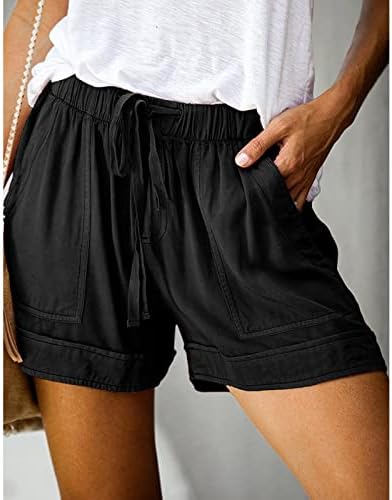 Drawstring Shorts for Women with Pockets Casual Loose Fit Summer Elastic Waist Lightweight Lounge Shorts