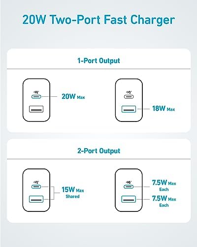20W High-Speed Charging: Enjoy fast charging with 20W max output for your iPhone, Samsung phones, and other devices. Simultaneous Dual-Port Charging: With the ability to use USB-C and USB-A ports simultaneously, power two devices at once without compromising speed or performance. Small and Compact: Designed with portability in mind, take the compact charger with you wherever you go, ensuring that you never run out of power when you need it the most. Safety First: Rest easy knowing that Anker's MultiProtect safety system offers comprehensive protection for your devices, giving you peace of mind while charging. What You Get: Anker Charger (2-Port, 20W), 2-pack 5 ft USB-C to USB-C cable, welcome guide, 18-month warranty, and our friendly customer service.