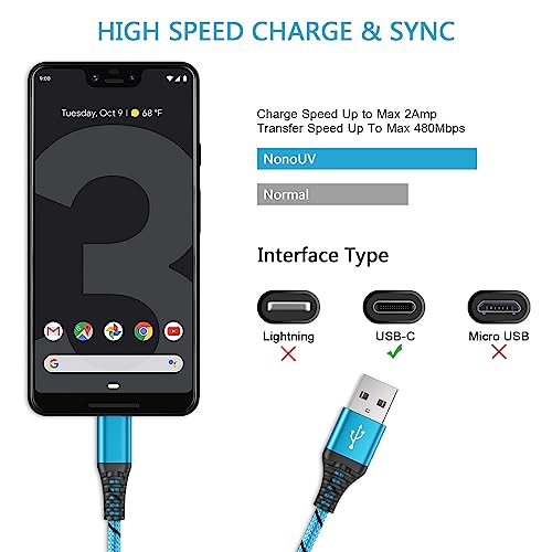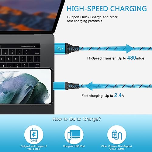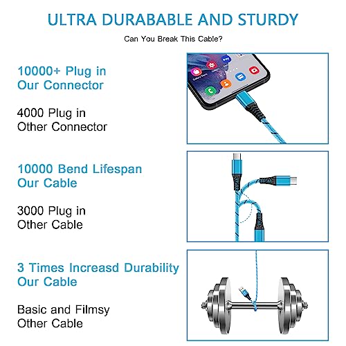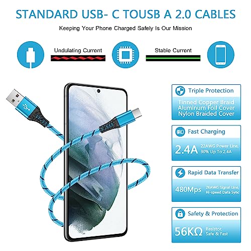 3A FAST CHARGING & SYNC: USB-C to USB A Cable Support High Speed 3A USB-C Charging for devices compatible with Quick Charge and Data Transfer speed up to 480Mbps, 25% faster than conventional samsung charger fast charging cord DURABLE SAMSUNG CHARGER CABLE: Samsung Galaxy A54 5G Charger Cable Fast Charging covered by premium quality braided nylon jacket can bear 10000+ bending test, durable enough to withstand heavy usage 6FT LONG USB C CABLE: 6Feet USB C Cable Samsung Galaxy A14 5G Charger Cord is convenient to use in different occasions, such as bedroom, sofa, office and even at the backseat of your car. Reversible design makes the Samsung A54 Charger easily insert into any Type-C enabled devices FAST CHARGER TYPE C FOR SAMSUNG: Type C Charger Fast Charging Cord for Samsung Galaxy S24/S24+/S24 Ultra/S23 FE/S23/S23 Ultra/S23+/S22/S22 Ultra/S22+/S21 FE/S21/S21+/S21 Ultra/S20 FE/S20/S20+/S20 Ultra/Note 20 10 9 8/Z Flip 5 4 3 5G/Z Fold 5 4 3 2/S10E/S10/S9/S8 Plus A15 A14 A54 5G A03S A13 A23 A53 5G A02S A12 A32 A42 A52 A11 A21 A51 A71 A10E A20 A50 A70, Google Pixel 8 Pro 7a 7 Pro 6a 6 Pro 5a 5 4a 4 XL 3a 3 XL 2, LG Stylo 6 5 4 V60 ThinQ K51 Velvet, Moto G Stylus 5G 2023/G Pure/G Power/G Play WHAT YOU GET: 2Pack 6 Feet Samsung Charger Cord Type C ( 1 X 6FT Blue Android Charger Cord Type C, 1 X 6FT Purple Android Charger for Samsung ). 7 X 24 Hours Reliable and Friendly Customer Service, 12 Month Warranty #5,820 in Cell Phones & Accessories ( ) #378 in