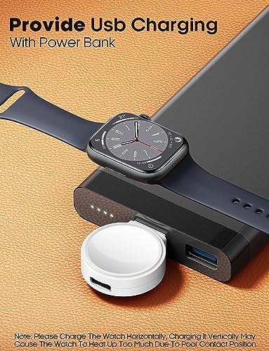 Laxarmer Mini Travel Portable Fast Magnetic Charger for Apple Watch iWatch Ultra Series 9 8 7 6 5 4 3 2 1,Small USB A Charging for iPhone Car Accessories- with Short Cord/Cable