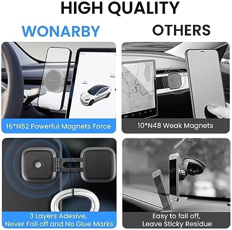 Wonarby Magnetic Phone Holder for Tesla - Upgraded Tesla Model 3/X/Y/S Accessories Phone Mount - Magsafe Compatible with iPhone 12/13/14 and Samsung Cell Phones Car Holder