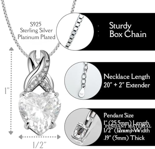 EXQUISITE BIRTHSTONE NECKLACE FOR WOMEN: Our Rosetacular Birthstone Heart Necklace featuring a stunning heart birthstone pendant that symbolizes love and connection. 12 birthstone colors. A special gift for women, mother, daughter, or girlfriend. Ideal gift for Birthday, Mother’s Day, Valentine’s Day and Christmas. PREMIUM QUALITY DIAMOND LIKE: Crafted from high-quality platinum-plated sterling silver, 5A cubic zirconia heart. This necklace ensures durability and a brilliant shine, highlighting the intricate infinity heart design that adds a touch of elegance to any outfit. 20” + 2” extender, box chain with lobster clasp. THOUGHTFUL GIFT FOR HER: Celebrate birthdays, anniversaries, or special moments with this unique birthstone jewelry. It’s an ideal gift for moms, girlfriends, or any cherished woman in your life, beautifully packaged and ready to surprise. ELEGANTLY PACKAGED FOR GIFTING: Each necklace arrives ready for gifting, displayed on plush velvet padding inside a luxurious box, accompanied by a blank card for your personal message, cleaning instructions to preserve its sparkle, and a soft cleaning cloth. It’s the ideal, thoughtful package, perfect for gifting straight away. PREMIUM CUSTOMER SERVICE: Our 90-Day Satisfaction Guarantee ensures a full refund or free replacement on any purchase of our birthstone necklaces if you encounter defects or damages not caused by artificial damage. Please contact our responsive customer service team within this period for prompt assistance and to initiate a hassle-free return or exchange. We are committed to ensuring your complete satisfaction with your cherished purchase. #1,272,733 in Clothing, Shoes & Jewelry ( ) #17,812 in