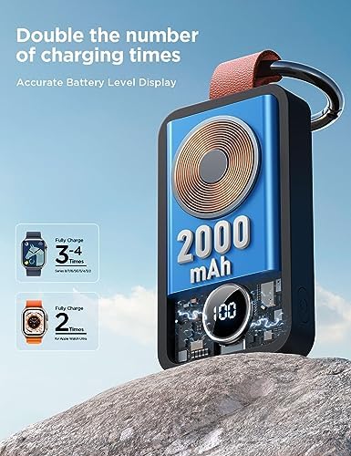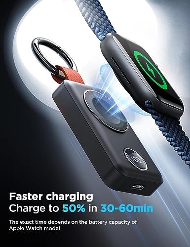 【Effortless Charging for Your Apple Watch】Experience efficient charging for your Apple Watch with Joyroom’s magnetic keychain charger. The built-in magnetic suction module ensures effortless auto-alignment to the charger while keeping it stable. The charger can fully charge Apple Watch Series 9/8/7/6/5/4/3/2/SE in just 1.5-2 hours, and Apple Watch Ultra 2/Ultra in 2.5-3 hours, maximizing the charging speed without compromising stability. 【True 2000mAh Battery】Don't let a low battery limit your day! With a 2000mAh capacity, Joyroom's portable wireless charger can fully charge your Apple Watch 3-4 times or Apple Watch Ultra 2 times. Experience a stress-free journey without worrying about your iWatch running out of battery. Fulfill all your charging needs with our upgraded battery capacity. 【Precise Battery Level Display】Joyroom wireless iWatch charger offers a precise battery level display featuring specific numbers for a more intuitive reading of remaining power. Unlike simple indicator lights, this display allows you to plan your charging time with precision for ultimate convenience. 【Convenient charging on-the-go】Joyroom's portable wireless charger is travel-friendly with its compact design, making it easy to take with you anywhere. The double leather and reinforced keychain ensure it stays securely attached to your keys or backpack, and it's perfect for charging your Apple Watch in emergencies when you're low on battery. 【Packaging Details & Reliable Support】The packaege includes 1x Joyroom portable wireless charger, 1x 3.3ft USB-C charging cable,1x User Manual. There is also an official professional after-sales service team from Joyroom to provides 3 Year Warranty and lifetime technical support to help you solve all your product problems within 24 hours.