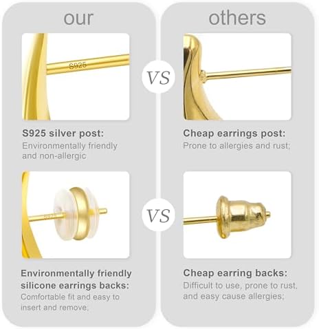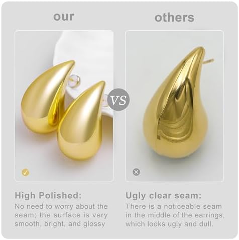 Chunky Gold Hoop Earrings for Women Lightweight Teardrop Dupes Earrings 925 Sterling Silver Post Large Drop Earrings Gold Plated Waterdrop Earrings Trendy Jewelry for Women