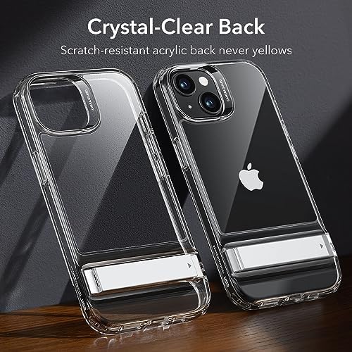 3 Stand Modes: go hands free and enjoy a more comfortable viewing angle by choosing between 3 stable stand modes to FaceTime family in portrait or catch up on your favorite shows in landscape Highly Adjustable Kickstand: the patented design of this stand case for iPhone 15 Plus provides you with the freedom to choose any angle you want up to 60 degrees while the durable hinge is lab tested to maintain functionality after more than 3,000 uses Military-Grade Protection: shock-absorbing Air Guard corners and raised screen edge and Camera Guard combine to ensure test-certified protection from drops, bumps, and scratches Looks Great, Feels Great: this clear case for iPhone 15 Plus combines soft polymer sides that ensure a comfortable grip with a tough acrylic back that resists scratches and never yellows to stay crystal clear for longer Compatibility: only for iPhone 15 Plus; slim case that supports wireless charging so you can charge your phone without taking off your case