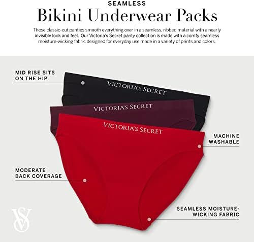 Bikini style underwear that shows just a little cheek. Seamless panties that are soft smooth and sleek for comfortable all day wear. Moderate back coverage shows a little cheek but not all. Mid Rise sits on the hip and offers versatility for everyday use. Stock up on your favorite styles with our Victoria's Secret underwear packs that come in a variety of colors and fabrics. #4,574 in Clothing, Shoes & Jewelry ( ) #22 in