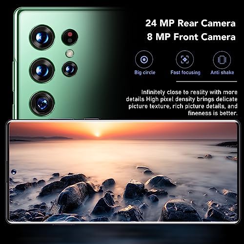 LARGE THIN SCREEN: With a 6.6in Incell HD screen, 2520x3088 resolution and ultra thin 1CM body, our 4G Unlocked Cell Phones delivers clear views and impressively bright and vivid colors. HIGH DEFINITION CAMERA: Unlocked Smartphone xperience excellent photography with 24MP rear and 8MP front cameras, as well as options for filters and stickers, and fast face unlock in just one second. FAST CONNECTIVITY: Connect effortlessly to WiFi(2.4G 5G 2 band), BT 5.0, built in GPS navigation, FM tuning, and network frequencies that support 4G, 3G, and 2G. NETWORK COMPATIBILITY: This Mobile Gaming Smartphone supports FDD/TDD 4G 1 2 4 5 7 8 20 28A 28B 40, 3G WCDMA 850 1900 2100 MHZ, 2G GSM 850 900 1800 1900 MHZ networks. However, please check with your local carrier to ensure compatibility before purchase. LONG LASTING BATTERY: Factory Unlocked Android Smartphone enjoy extended battery life with the 7000mAh battery, lasting up to 20 hours of talk time, 18 hours of music playback, and 6 hours of gaming. The innovative AI battery management system conserves power and extends standby time.