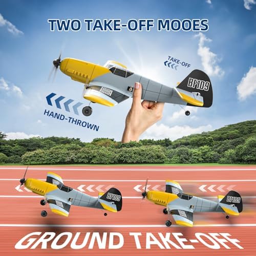 DEERC RC Plane 3 Channel BF-109 Remote Control Airplane Fighter Toys,2.4GHz 6-axis Gyro Stabilizer RTF Glider Aircraft Plane with 2 Batteries,Easy to Fly for Adults Kids Beginners Boys