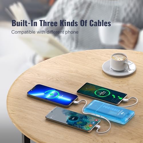 [New Version Portable Charger with Built in Cable]: Our portable battery charger built-in three cables for all different phones charge directly,no need extra cable.built-in in AC wall plug outlet for recharge.the semi-transparent case that allows you to see internal structure and design. This not only adds a futuristic touch but also instills confidence in its quality and reliability [USB C 20W Power Bank Charger] The slim and handy 10000mAh high capacity portable phone charger with 6 in 1 compact design is easy to carry, support USB C 20W fast charge, when the Usb port or USB C port or the built in Usb C cable use alone support 20W .if use together will share as 5V 3A.extremely convenient for travel and daily use in charging electronic devices mobile phones, cameras tablets and so on [Two Ways To Charge The External Battery Pack]the first way use the built –in AC wall plug for recharge the portable power bank ,will fully charge in 4.5 hours.the second way use the 5V 3A Usb C charging cable to charge the battery pack,suggest the fist way more convenience. UL2056 certificate. Intelligent power management IC provides power short circuit protection, over current protection, over voltage and over heat protection to ensure safe charging [Slim and Compact size Portable Phone Charger with Digital battery Display]: the Portable battery Charger dimension is 5.9*2.8*0.55inch, which make it easier to carry, will not give you too much trouble when carrying out. Stay informed about your power bank's battery status with the easy-to-read digital display. This intuitive feature lets you know exactly how much power is remaining, so you can plan your charging needs accordingly [Travel-Friendly Design with Portable Carrying Case Power Bank]: This power bank comes with a portable carrying case. Its compact size and lightweight construction make it the perfect companion for your travels, ensuring you have reliable power wherever you go. Additionally, using the built-in AC plug, providing you with a quick turnaround time and minimal downtime between charges [What’s You Get]1x 10000mAh Portable Charger,1xnice carrying bag(easy to take anywhere),1x User Manual, any questions or problem will respond in 12 hours