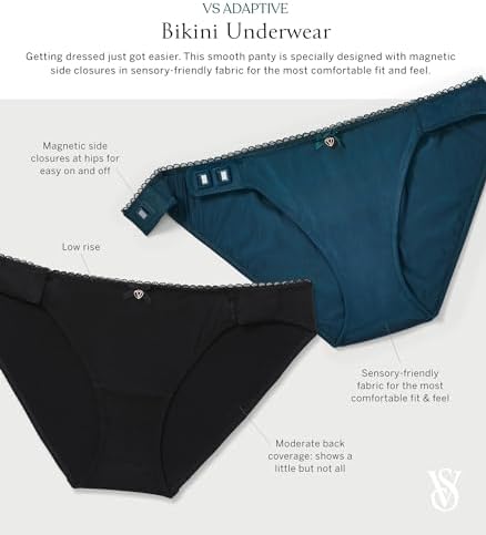 Magnetic side closures that makes it a snap to secure or take off. Smooth sensory friendly fabric for the most comfortable fit and feel. Signature Body By Victoria bow and charm with picot elastic trim. Moderate back coverage shows a little cheek but not all. The Adaptive Body by Victoria collection features a wide range of best-selling styles with high quality fabrics and great fit. #156,579 in Clothing, Shoes & Jewelry ( ) #557 in
