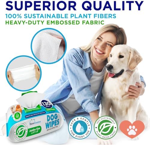 Dog Wipes for Paws and Butt - 130 Count + 4 Travel Puppy Wipes - 8" x 8" Large Dog Grooming Bath Wipes | Hypoallergenic Dog Face Wipes, Extra Thick Cleaning Deodorizing Pet Wipes for Dogs, Cats, Pets