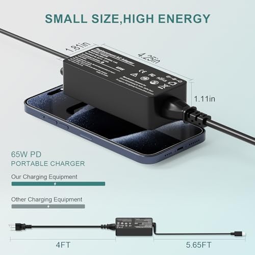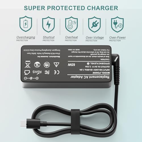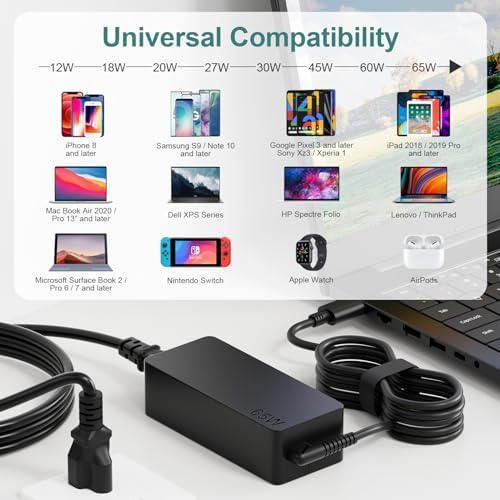 【Specifications】 Input:100-240V~50-60Hz 1.8A,Watt:65.0W(Compatible with 45 Watt ) Output:5V-3A 9V-3A 12V- 3A 15V-3A 18V-2.5A 20V-3.25A USB Type-C(USB-C)Laptop Charger. Compatible with Dell Latitude 5420 5520 5175 5540 5320 5285 7200 7400 e5420 7420 5330 5289 5400 7370 7310 7410 5290 5530 7530 7390 7275 5430 7320 7330 charger. Compatible with Dell Chromebook 3100 3500 3400 7486 3380 5300 7200 3300 5190 5400 7300 P28T P86F P101G P111G P28T002 P99G P29T. Dell XPS 13 9305 9365 2in1 9310 9300 9370 9380;XPS 12 9250 Dell 65w usb c charger. Compatible with Dell P/N:HA65NM170 LA65NM170 DA65NM170 LA65NM190 LA45NM171 DA45NM170 DA30NM150 HA45NM170 DA65NM190 LA45NM150 AA45NM150 HA30NM150 HA45NM180 0M1WCF 08XTW5 D0KFY 04RYWW 0HDCY5 ADP-30CD 02CR08 8XTW5 2YKOF HDCY5 DA65NM190 24YNH JT9DM 0JYJNW 470-ABSF 492-BBUU 492-BBWZ 02YKOF You will get 1*adapter, 1*power cord. As well as a 30-day return or exchange and a one-year warranty.