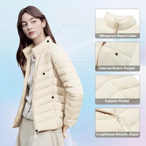 [Keeping Warm]The size is one size smaller.If your size is in between, we recommend you go for a larger size.BOSIDENG women's down jacket with interior down insulation to block out cold temperatures and add warmth;The down coat features full-zip,stand collar and warm cuffs, blocking out the wind and providing a comfortable fit. Let you don’t fear outdoor temperature changes. [Lightweight Down Jacket] BOSIDENG women's lightweight down jacket features water-resistant fabric, It is suitable for spring, fall and winter. Wear it with a t-shirt for brisk fall days or layer with a sweater or other outwear for the colder winter. [Humanized Design] Women's puffer jacket includes 2 outside zipper pockets and 1 inside button pocket.It is great for storing money, keys, phone, wallet, ID card etc,providing convenience for your property safety. [Multi-Colored & Packable] BOSIDENG teamed up with COLORO to develop popular colors and provide more color options for dressing in cold seasons.This puffy down jacket can be packed into carrying bag with a drawstring closure and easy to travel. [Multi-Purpose]The jacket provides long warmth without any bulkiness,It is suitable for casual wear,traveling,cycling, hiking,outdoors camping.etc. A must for women wardrobe in spring, autumn and winter, it is a very great Christmas, Thanksgiving gift too! #124,925 in Clothing, Shoes & Jewelry ( ) #26 in