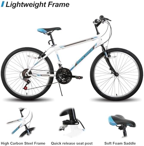 Hiland 24 26 inch Mountain Bike for Men Women, 21 Speeds High-Carbon Steel Frame, Sport Cycling MTB Bicycle for Adult