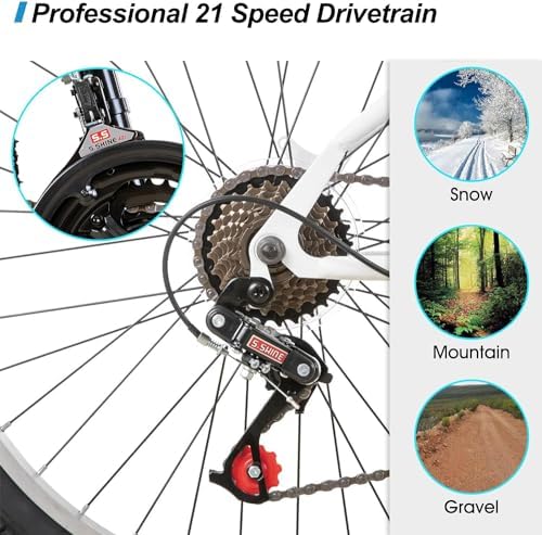 DURABLE DESIGN - Built with high-tensile steel, ensuring long-lasting durability, making it a rugged choice for men and women riders. Tackle any terrain confidently with this sturdy 26" mountain bike. VERSATILE SPEED CONTROL - Conquer various terrains with 21 speeds and v-brakes, offering precise control and power. Ideal for commuters, and school-goers seeking daily biking adventures. Also makes an excellent gift choice. AFFORDABLE EXPLORATION - Get great value for your money with this cost-effective, entry-level 26" MTB. Perfect for riders between 5’-5’8’’.24 in bicycle suit rider between 4’3’’-5’2’’ Unleash your inner explorer without breaking the bank. ADD TO CART NOW. QUICK SETUP - Enjoy a swift setup! This mountain bike comes 90% pre-assembled, reducing setup time and letting you hit the trails faster. DEDICATED CUSTOMER SUPPORT - Count on reliable customer service from the Hiland support team, guiding you through assembly and promptly addressing any inquiries you may have.