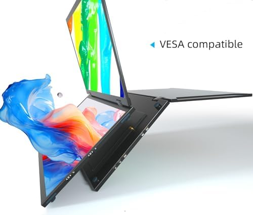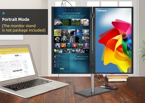 ?[ONE CABLE CONNECTION] The Virzen screen extender portable monitor features a full-function USB-C port and a power supply USB-C port. You only need a USB C to USB C cable to control both screens at the same time. Say goodbye to cumbersome connection processes and redundant cables and start your work smarter and quicker even when traveling. ?[COMPATIBLE WITH WINDOWS AND MAC OS SYSTEM] Virzen triple screen dual portable monitor is a different form factor than previous triple screen portable monitors. It is compatible with Windows and Mac OS systems. You can easily achieve a 1 to 3 screen workstation using only one USB-C cable for connection. ?[VESA& KICKSTAND] Virzen triple screen dual portable monitor is equipped with a VESA 180° adjustable kickstand integrated design to make this portable monitor super convenient. It becomes the ideal business travel companion for laptops and phones as a second or dual screen to maximize work efficiency and simplicity. Each screen of this laptop monitor extender supports 0-360°rotation, making it easy to share the screen with your colleagues and friends in all directions in simpler way. ?[1080P FHD IPS MONITOR] With 1080P FHD IPS panel, the 15.6”dual monitor offers you 16.7M color, 300 nit brightness, 78% NTSC color gamut, 1000:1 contrast ratio, and 60Hz bringing you a clearer and more true-to-life picture. With blue light protection tech, it effectively reduces blue light radiation damage and makes it comfortable to watch for a long time. Built-in with dual speakers, equipped with a type-c HDMI input port. ?[ULTIMATE EFFCIENCY] Experience ultimate efficiency with Virzen triple dual portable monitor, One screen, double the productivity!It maximizing your workspace and enhancing your reading and multitasking capabilities. The dual 15.6" stacked monitor expands your workspace to 23.8".Upgrade your productivity!