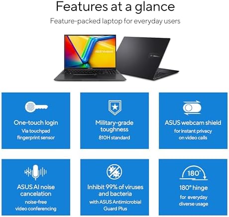 ASUS Vivobook 16 Laptop, 16” WUXGA 1920X1200 16:10 Display, AMD Ryzen™ 5 5625U CPU, AMD Radeon™ Graphics, 8GB RAM, 512GB SSD, Fingerprint Sensor, Windows 11 Home, Indie Black, M1605YA-EH54